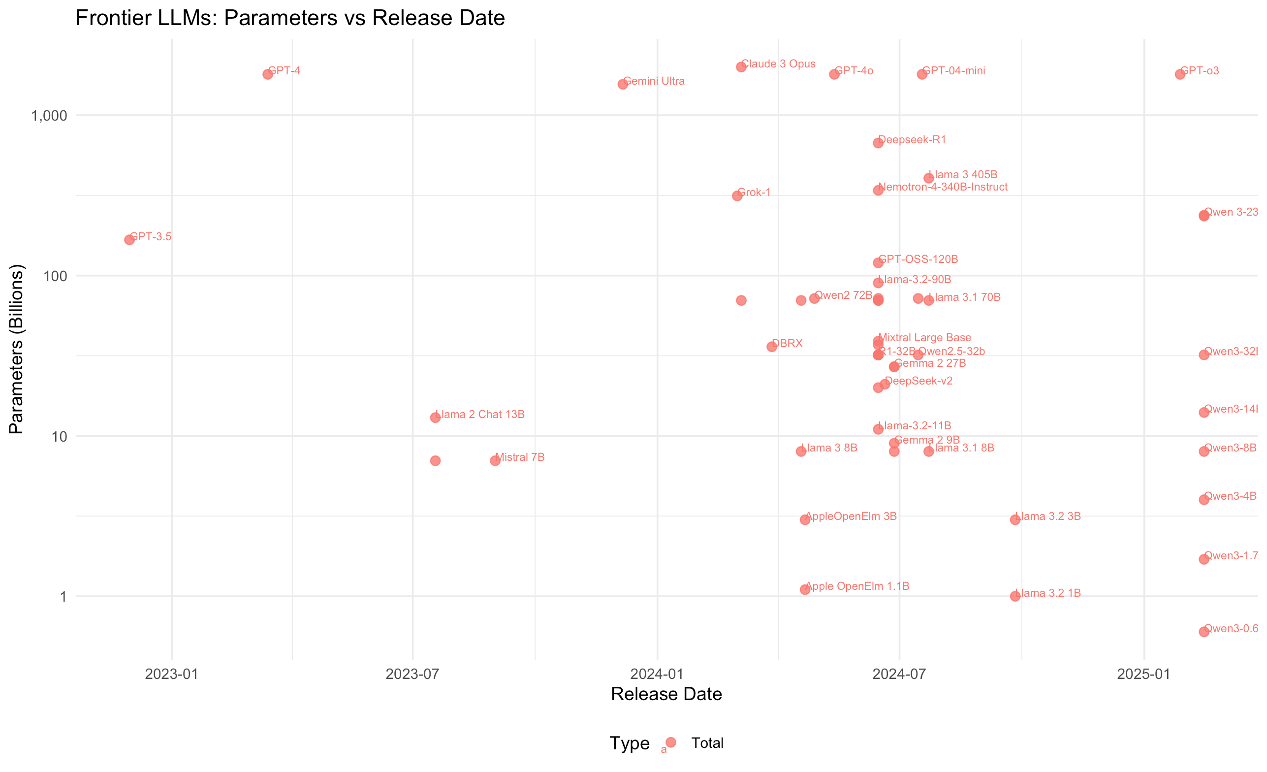 Even with all of these caveats, it’s fairly clear that parameter counts have leveled off in the past two years based on publicly disclosed (and estimated) data. But why?